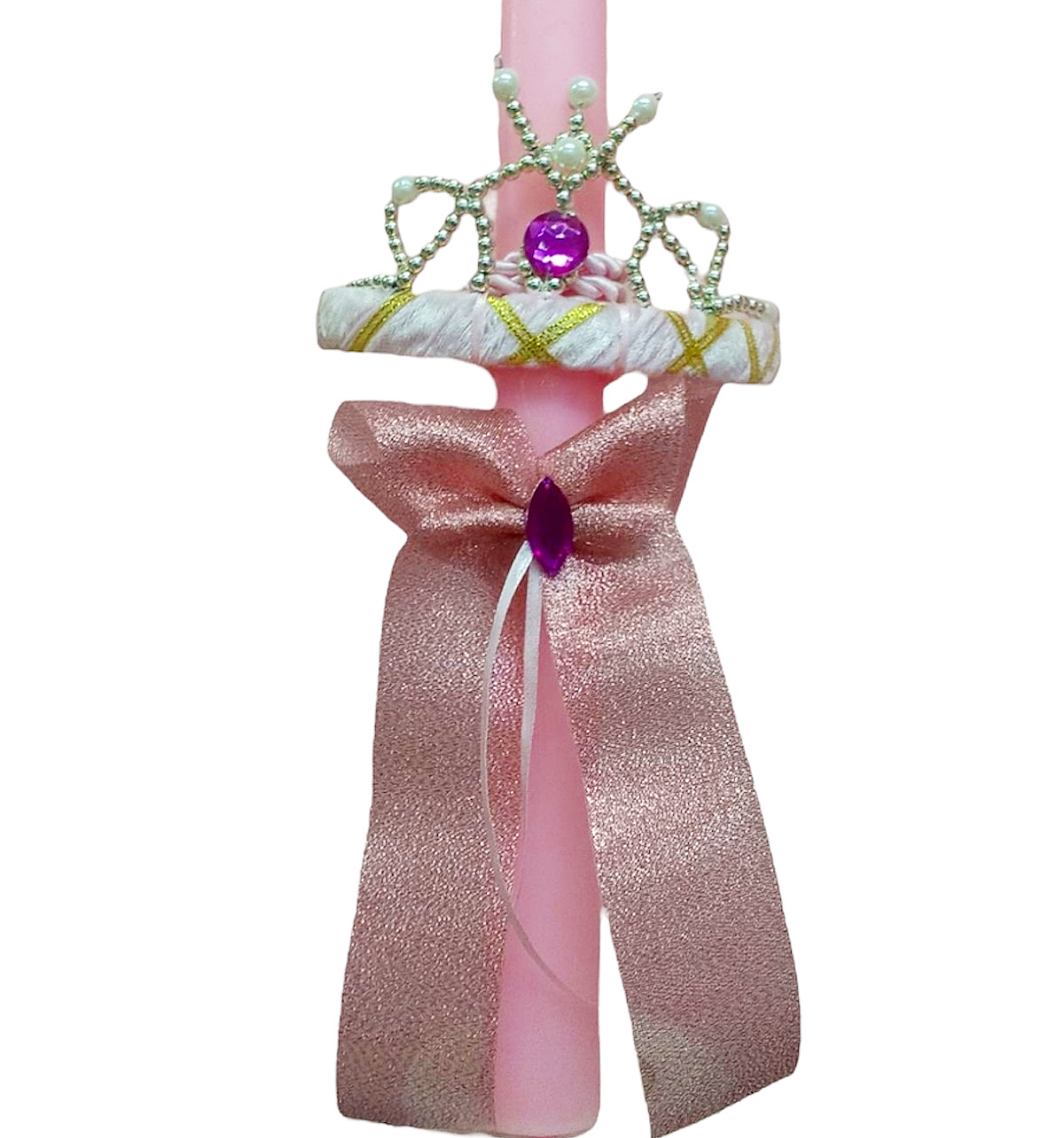 Λαμπάδα κορώνα υφασμάτινη ροζ