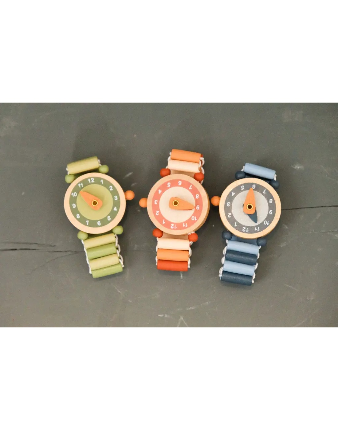 Ξύλινο Εκπαιδευτικό Ρολόι Χειρός για Παιδιά, Πράσινο χρώμα