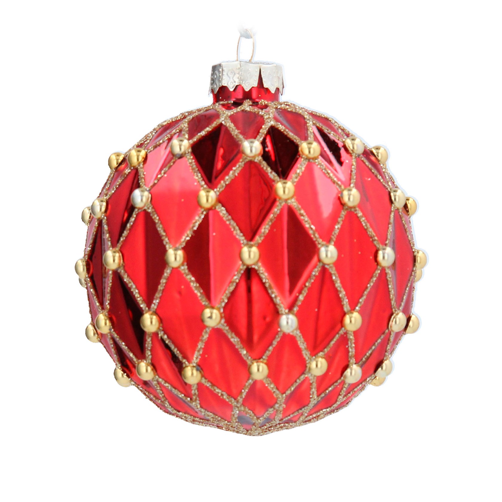 00180, Gisela Graham, στολίδι γυάλινη μπάλα, κόκκινη με χρυσές λεπτομέρειες