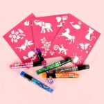 Στο σετ θα βρεις 6 χρωματιστά στυλό και 3 φύλλα με σχέδια.