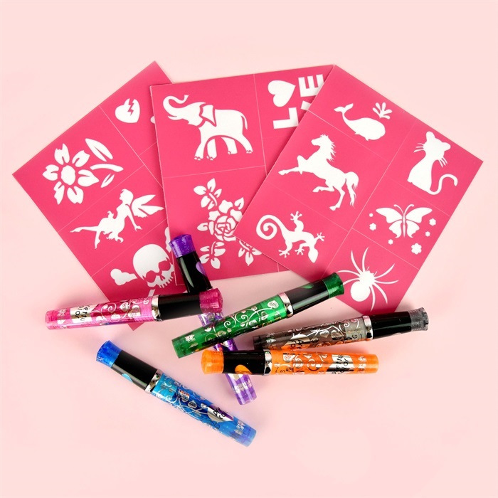 Με το Στυλό για Tattoo Deluxe θα δημιουργήσεις μοναδικά σχέδια στα χέρια, τα πόδια ή όπου αλλού έχεις σκεφτεί. Με την βοήθεια των έτοιμων σχεδίων που θα βρεις μέσα, θα κάνεις λαμπερές εμφανίσεις γρήγορα και εύκολα. Μπορείς να ζωγραφίσεις ελεύθερα δικά σου σχέδια και τους εντυπωσιάσεις όλους.