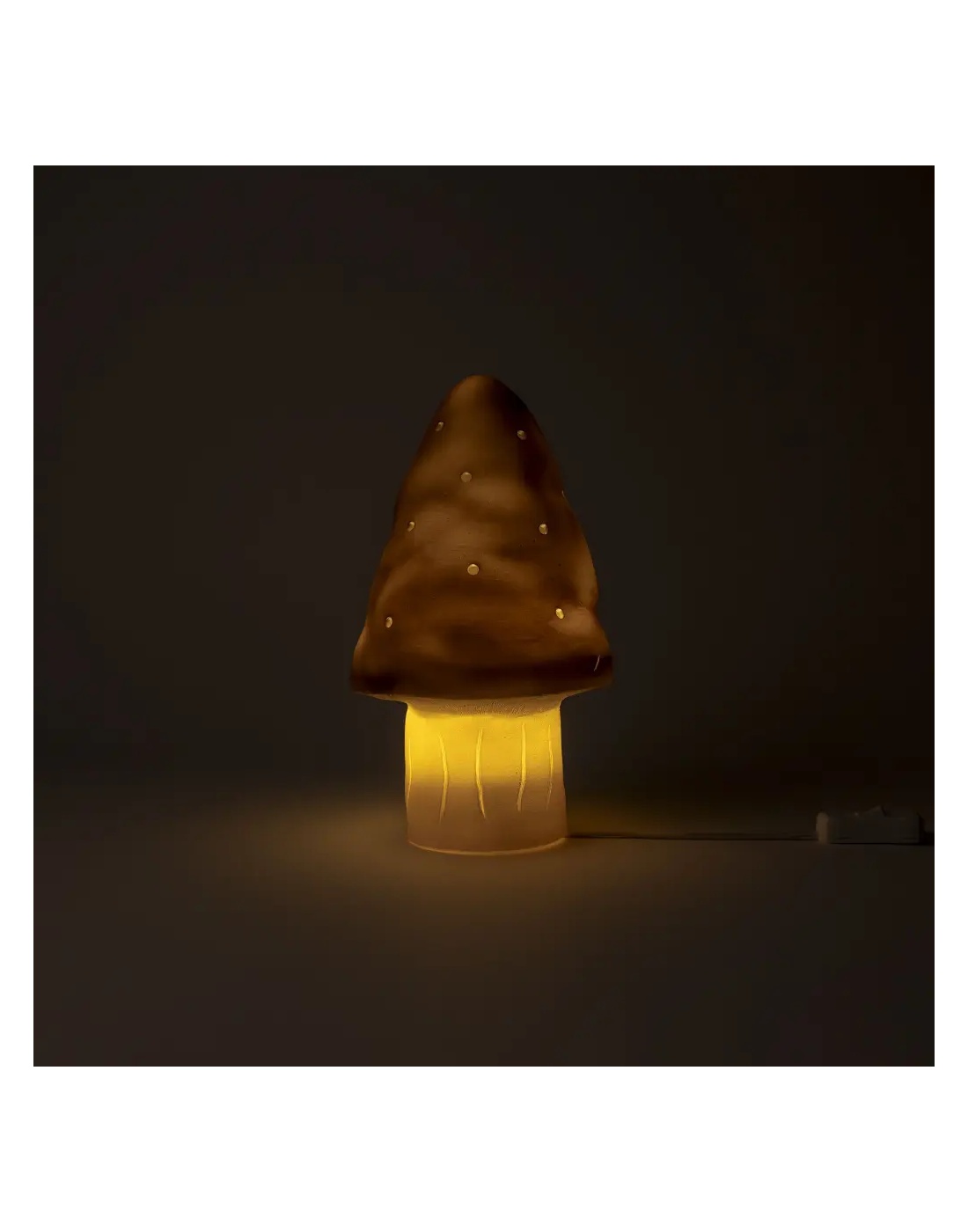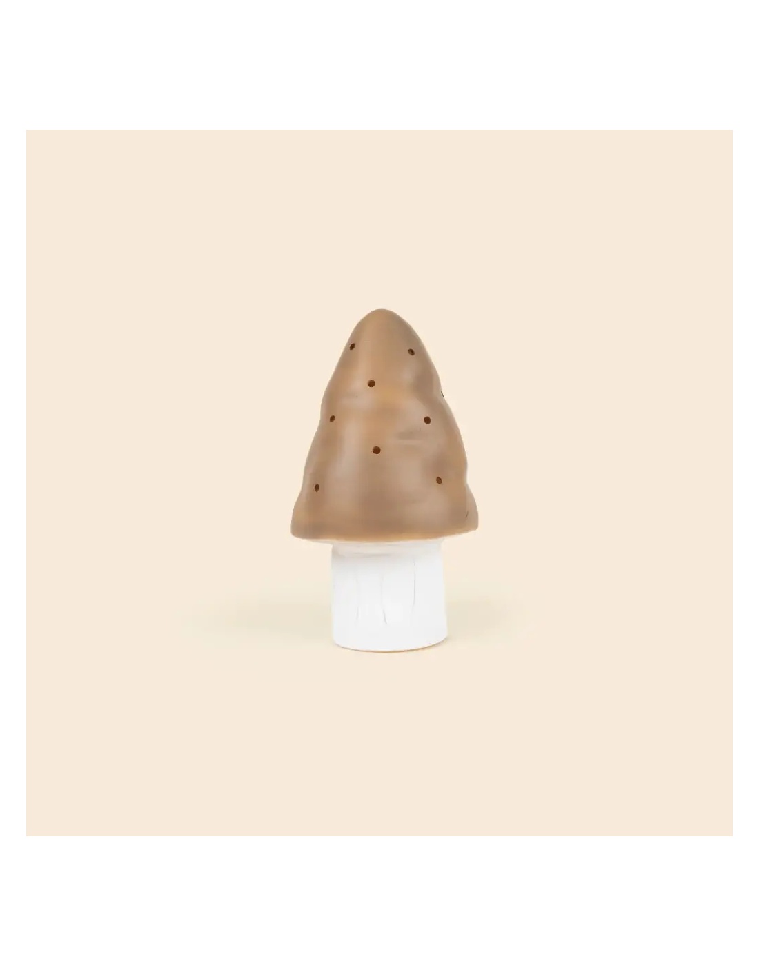 Με το φωτάκι νυκτός Small Mushroom Chocolate, ένας μαγικός κόσμος ονείρων ανοίγει στο παιδικό δωμάτιο. Προσφέρει ένα απαλό και διακριτικό φως, ιδανικό για να βοηθήσει τα μικρά παιδιά να χαλαρώσουν και να αποκοιμηθούν ήρεμα και με ασφάλεια.