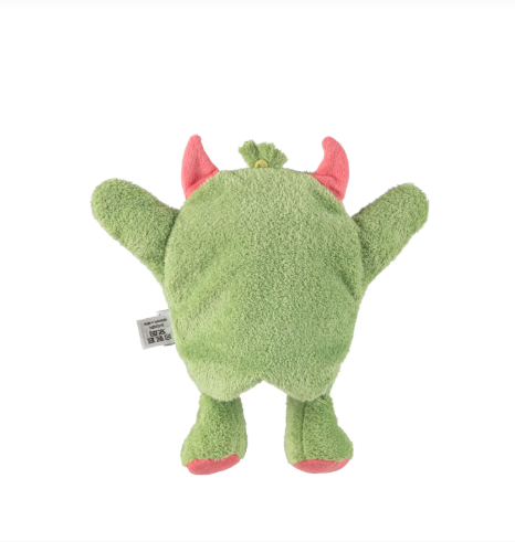 Χαριτωμένη υφασμάτινη κούκλα κουκλοθεάτρου σε σχέδιο μικρού τέρατος που προσφέρει διασκεδαστικό παιχνίδι.