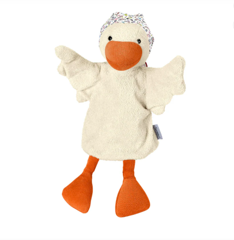Λούτρινη μαριονέτα χήνα σε απαλό εκρού χρώμα 36x22x11 εκ, ιδανική για δημιουργικό παιχνίδι και παραστάσεις κουκλοθέατρου.