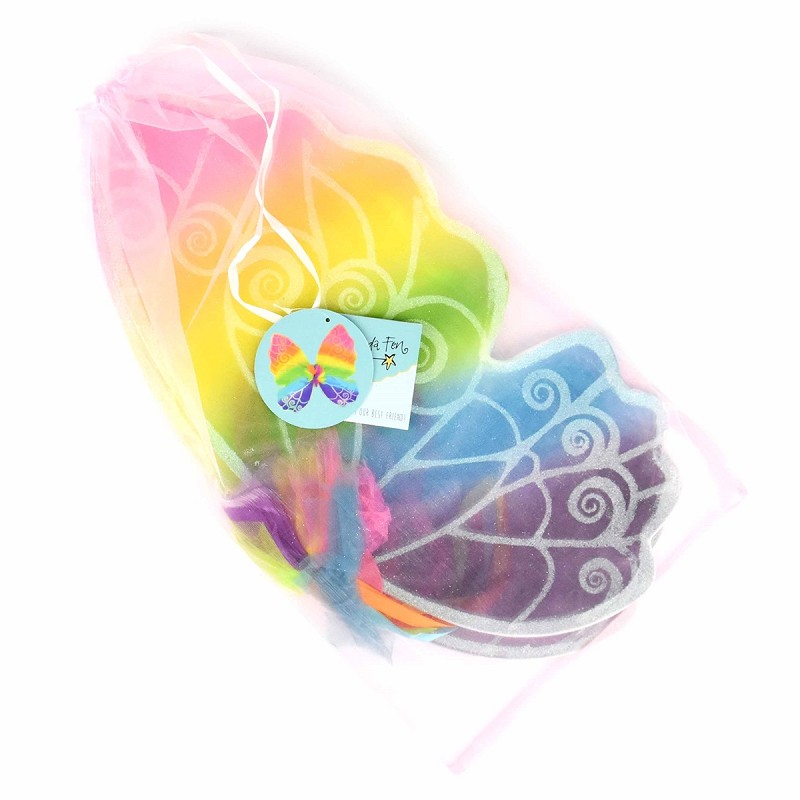 Πολύχρωμα φτερά νεράιδας με λεπτομέριες απο glitter. Σατέν ύφασμα με ελαστικούς ιμάντες