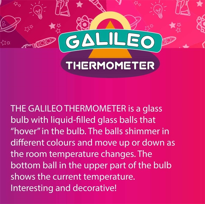 Με το εντυπωσιακό θερμόμετρο του Γαλιλαίου θα ξέρεις πάντα τη θερμοκρασία του δωματίου. Η φούσκα ανεβαίνει ή κατεβαίνει αντίστοιχα, ανάλογα με τη θερμοκρασία.