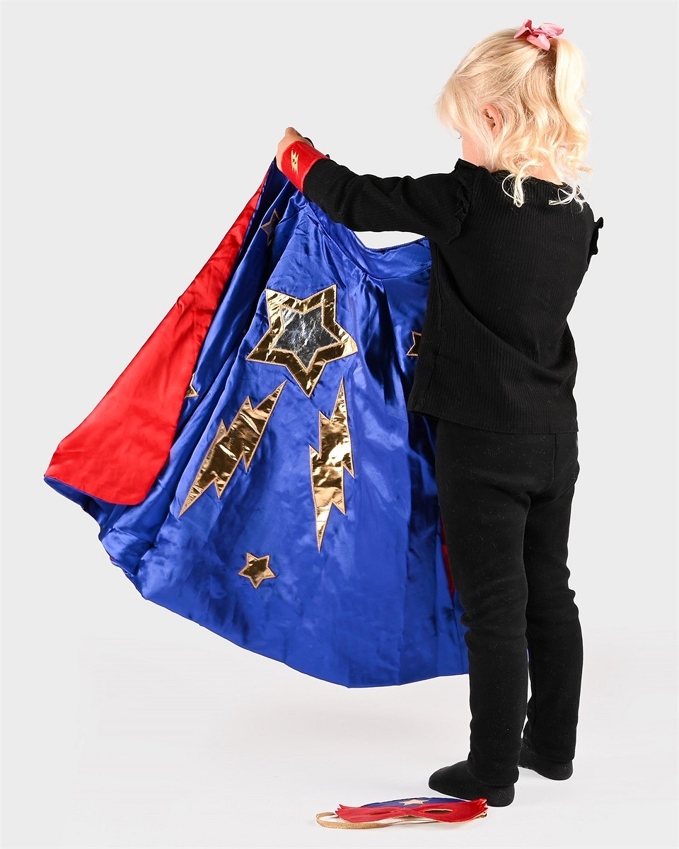 75201, Den Goda Fen, Μπλέ-κόκκινη κάπα Super ήρωα Flash διπλής όψης, 98-128εκ., 2-8