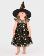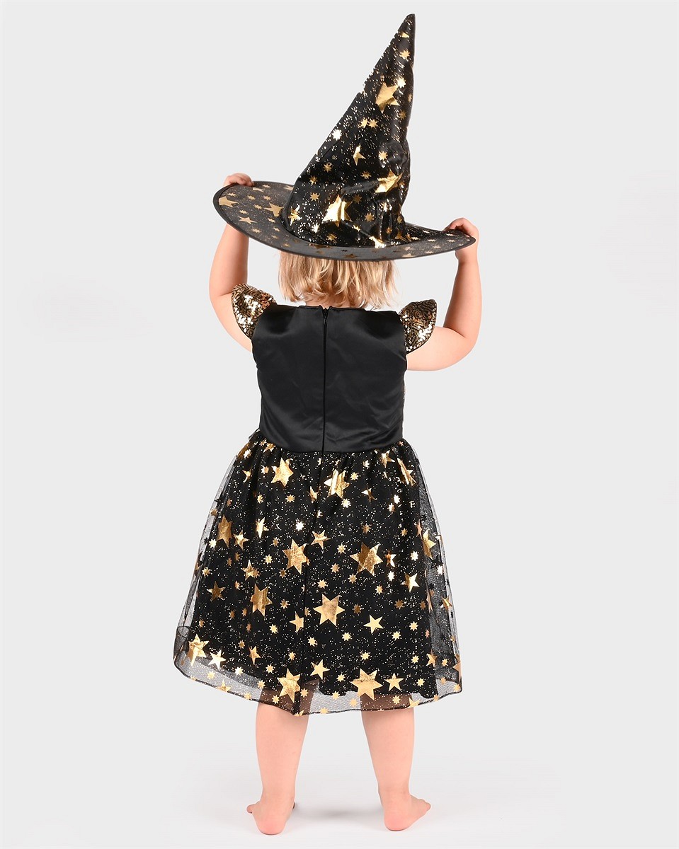 Στολή μάγισσας με καπέλο και χρυσα αστεράκια.