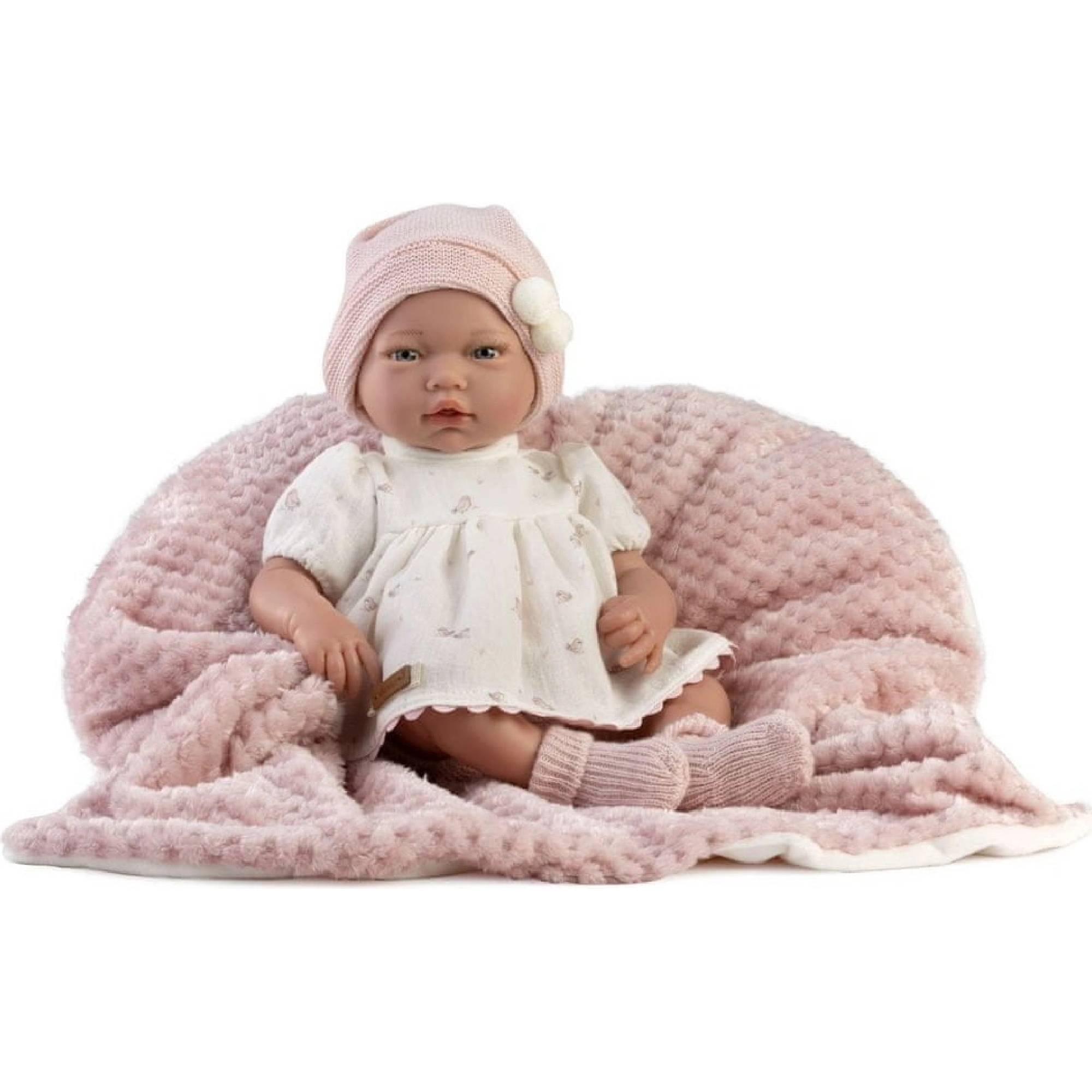 893, Guca, ΚΟΥΚΛΑ 38cm -λευκό φόρεμα ροζ σκουφί