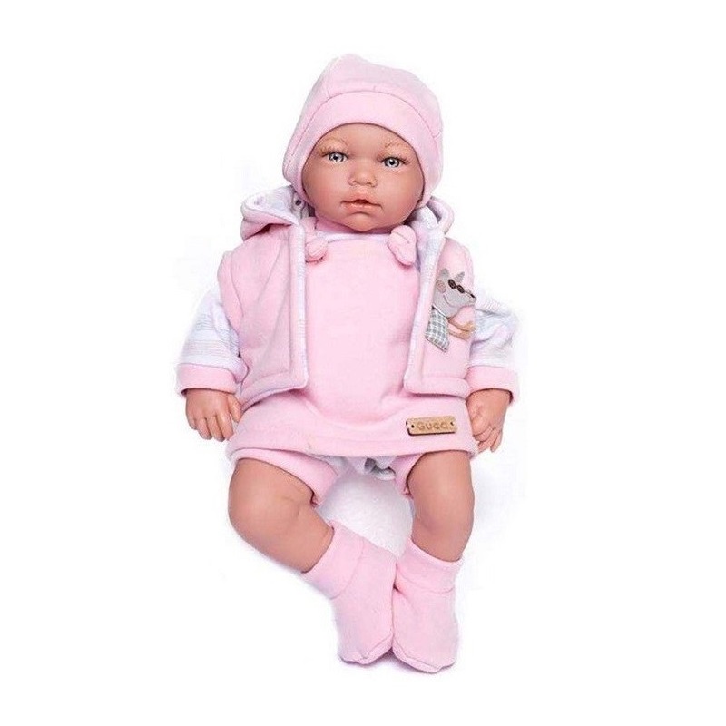 905, Guca, Κούκλα Μωρό, Celine, με ροζ Ζακετούλα και σκουφάκι, 38CM