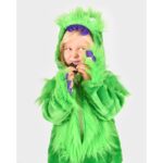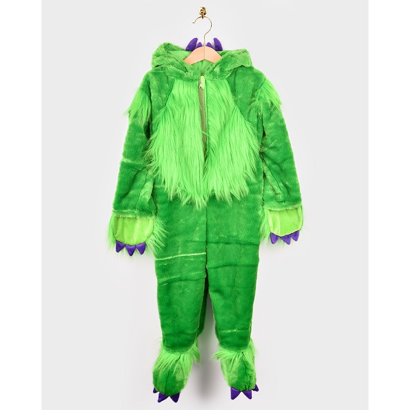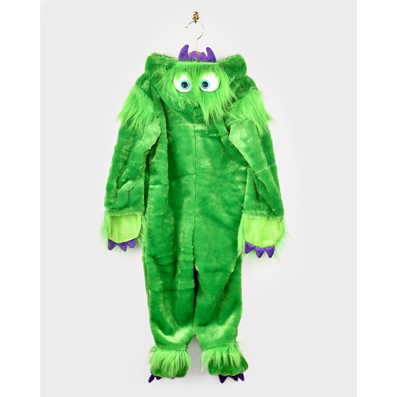 Στολή πράσινο τέρας με γουρλωτά μάτια και κουκούλα. φερμουάρ μπροστά. Κρυμμένες τσέπες στα πλάγια.