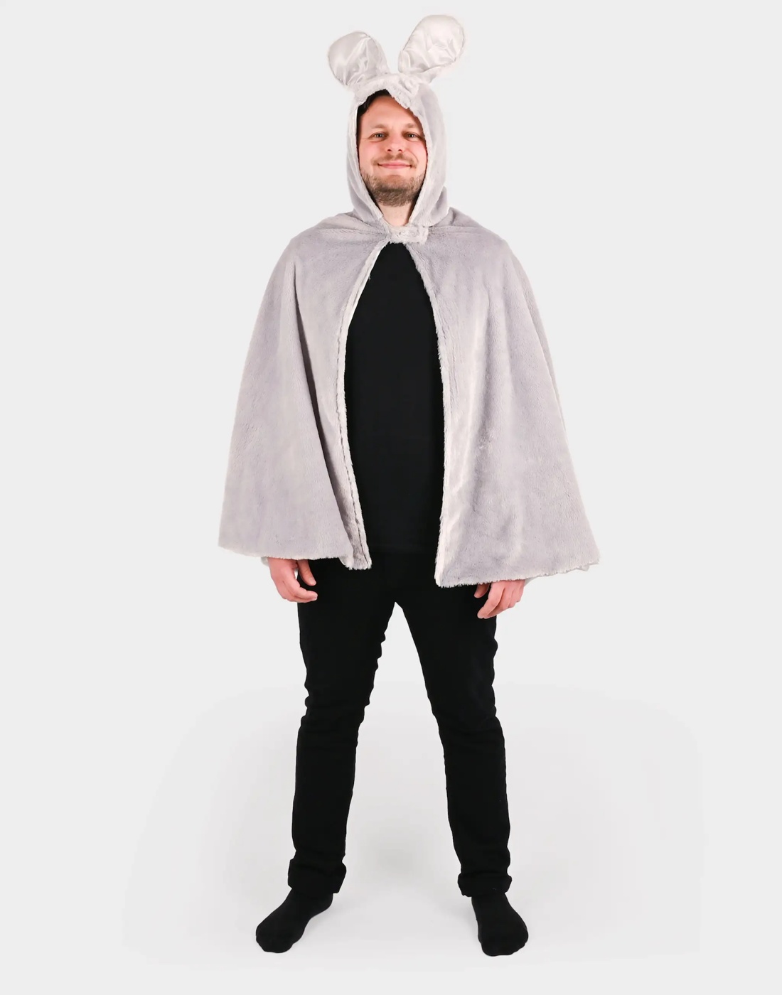 Χαριτωμένη και άνετη αποκριάτικη στολή για ενήλικες, σε μορφή κάπας με κουκούλα κουνελάκι.