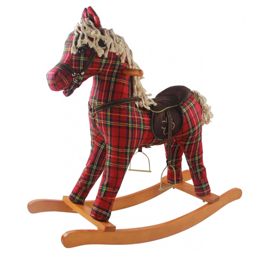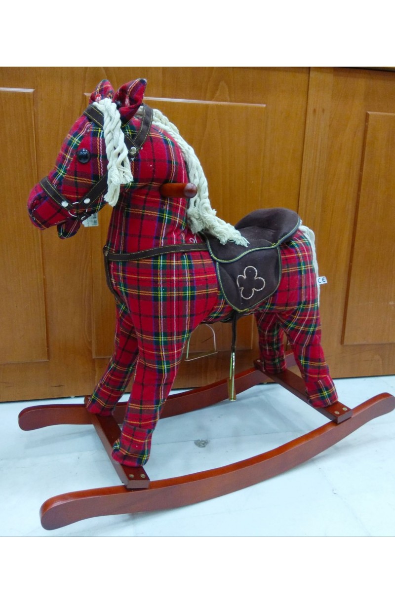 Κουνιστό άλογο κόκκινο καρώ με ήχο, κίνηση στόματος και αναβολείς!!