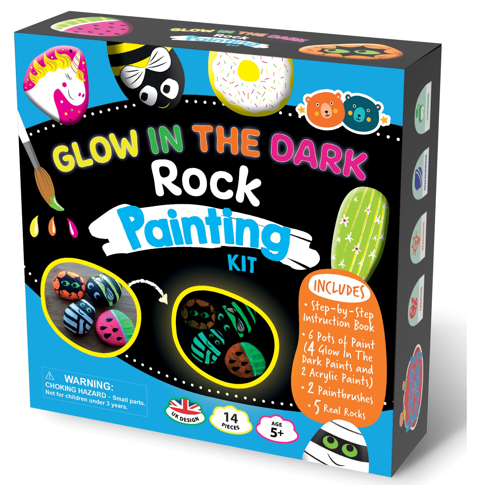 Στο σετ πέρα από τα έξι απίθανα χρώματα, δυο ακριλικά και τέσσερα glow in the dark χρώματα, περιλαμβάνονται αναλυτικές οδηγίες για να κάνεις βήμα-βήμα απίθανα σχέδια στις πετρούλες!