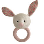Ένα μικρό χαριτωμένο μασητικό παιχνίδι, σε χρώμα ροζ, φτιαγμένο από βαμβάκι, εντελώς ασφαλές για τα μωρά.