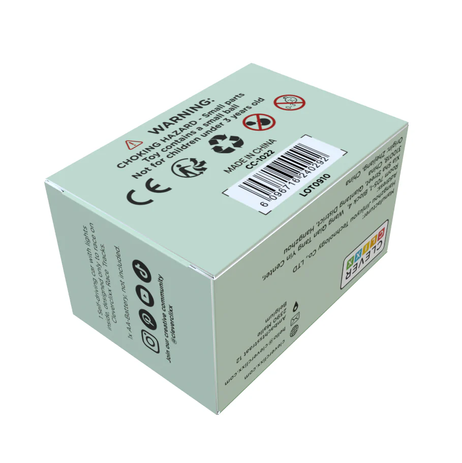 Βάλτε μια μπαταρία ΑΑ στο αυτοκίνητο και ξεκινήστε να οδηγείτε. Το αυτοκίνητο Cleverclixx ταιριάζει τέλεια στην πίστα σας. Τα μπροστινά φώτα ανάβουν επίσης όταν αρχίζει να κινείται.