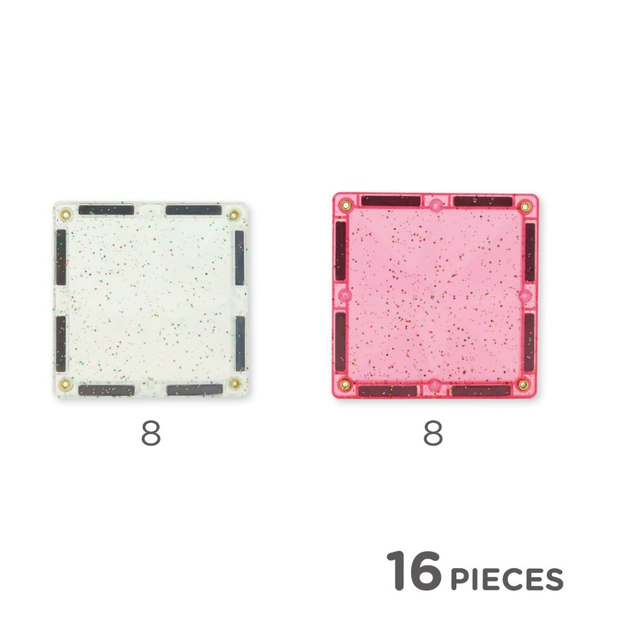 - 16 διάφανα ροζ πλακίδια με glitter για μοναδικό, μαγικό αποτέλεσμα στις κατασκευές.