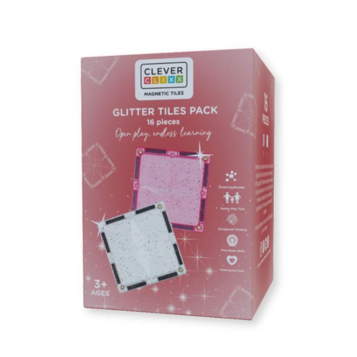 CC-1029 , Cleverclixx, Glitter Tiles Pack Transparent / Pink | 16 pieces