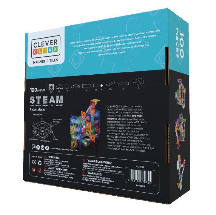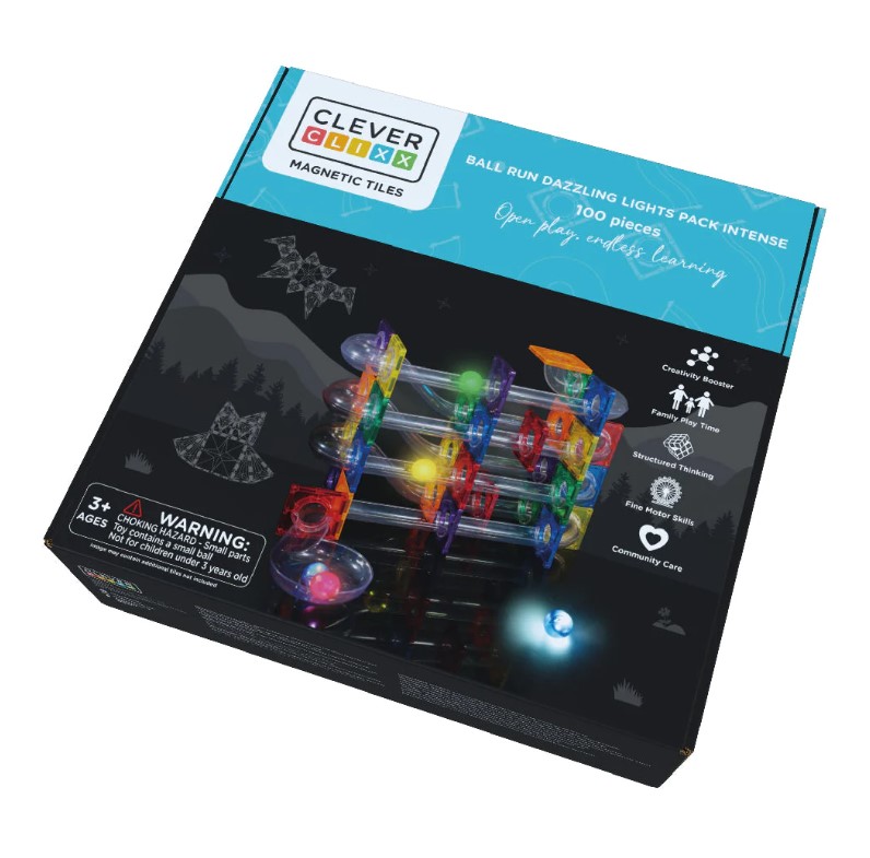Δημιουργήστε μία εξαιρετικά διασκεδαστική πίστα με μπίλιες, με αυτό το πακέτο Cleverclixx Dazzling Lights 100 τεμαχίων. Με αυτό το σετ, το παιδί σας είναι έτοιμο να φτιάξει το πιο cool run με μπίλιες και είναι έτοιμο να ξεκινήσει αγώνες. Η δημιουργικότητα και η φαντασία του παιδιού σας ελεύθερη για να βρει διασκεδαστικές κατασκευές και ιδέες για να παίξει με το αγαπημένο του σετ Cleverclixx.