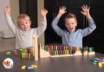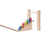 200 πολύχρωμα τουβλάκια Ντόμινο να χτίσεις και να ρίξεις! Βάλε τα τουβλάκια το ένα πίσω από το άλλο και σχημάτισε μια σειρά χρωματιστή! Περιέχονται μερικά μεγαλύτερα τουβλάκια για δυσκολότερες πίστες και ένα κουδούνι για τον τερματισμό!