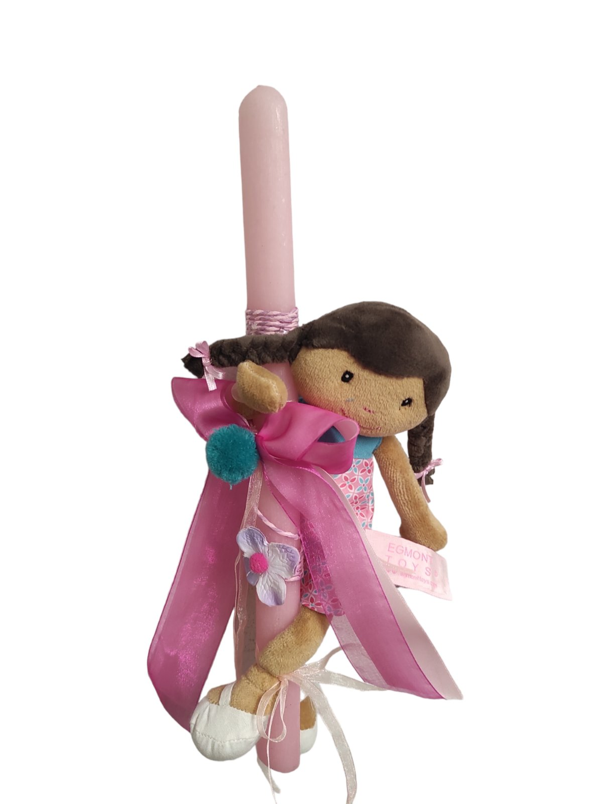 Πασχαλινή Λαμπάδα με Υφασμάτινη Κουκλίτσα σε Ροζ Αποχρώσεις