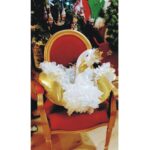 Βελουδένιο ολόλευκο απαλό ύφασμα για το μακρύ λαιμό του Κύκνου, ενώ πανέμορφες λεπτομέρειες είναι το στέμμα και το ράμφος από χρυσαφί λαμπερό ύφασμα.