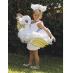 Ένα σύννεφο από μικροσκοπικά ντελικάτα βολάν από ολόλευκη οργαντίνα σχηματίζει το στήθος και τα φτερά του Κύκνου και προσθέτει κομψότητα στην εμφάνιση.