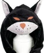 Ποιος δεν αναγνωρίζει έναν μαύρο γάτο. Είναι μια ολόσωμη βελουτέ φόρμα με ενσωματωμένο κεφαλάκι γάτας και άσπρη μουσούδα.