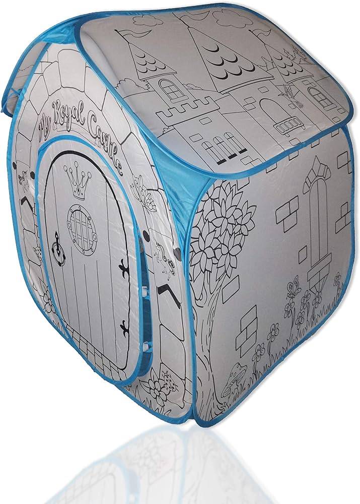 Ζωγράφισε το δικό σου κάστρο όπως ακριβώς το φαντάζεσαι και ζήσε μέσα στον μαγικό σου κόσμο. Η σκηνή ξεδιπλώνεται εύκολα και δεν χρειάζεται στήσιμο. Περιέχεται σε θήκη με χερούλι για να μπορεί να την φυλάσσεται και να μετακινείται εύκολα.