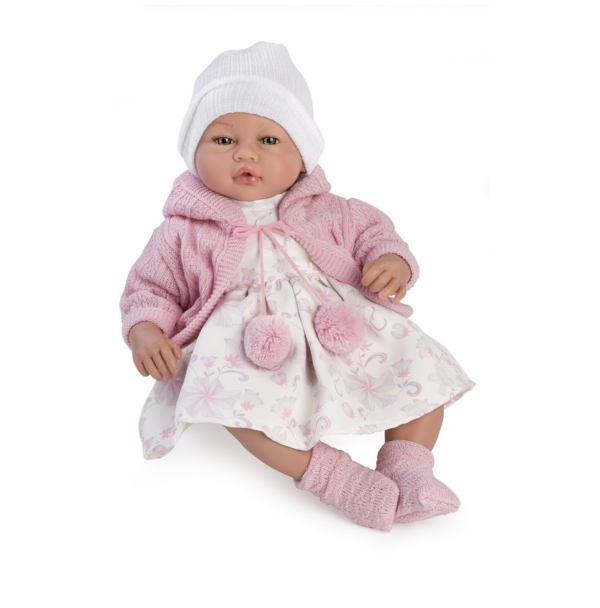 H Κούκλα Μωρό “Ainara” φόρεσε το χαριτωμένο ροζ φορεματάκι της και το ασορτί σκουφάκι της και είναι έτοιμη για ατελείωτες βόλτες.