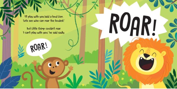 Αυτό το βιβλίο περιλαμβάνει μια διασκεδαστική ιστορία με τα ζωάκια της ζούγκλας. Τα ζωάκια έχουν αστεία googly μάτια και έτσι οι χαρακτήρες ζωντανεύουν!