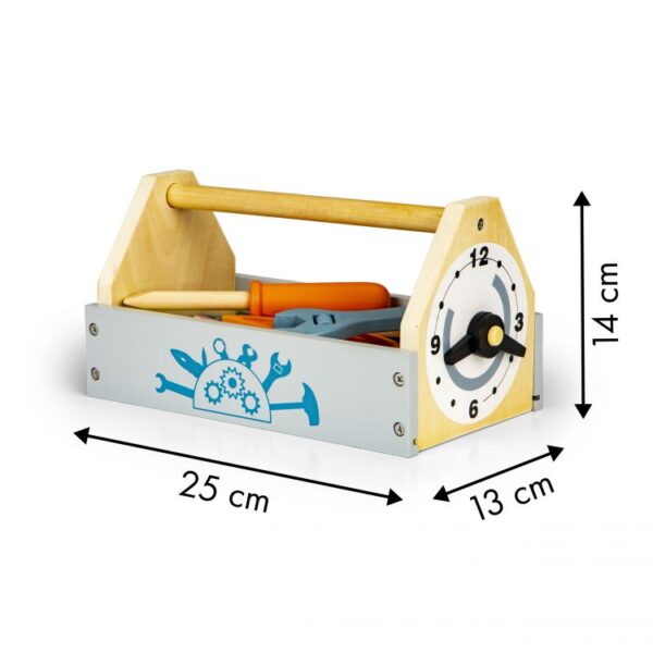 TL80013, Ecotoys, Ξύλινη εργαλειοθήκη με ρολόι και αξεσουάρ, 25 x 13 x 14