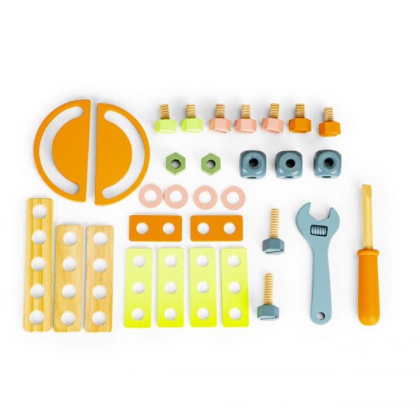 Ξύλινη εργαλειοθήκη, ασφαλής κατασκευή, χωρίς αιχμηρές άκρες που περιλαμβάνει κλειδί, κατσαβίδι και βίδες.