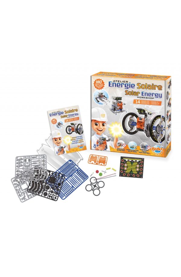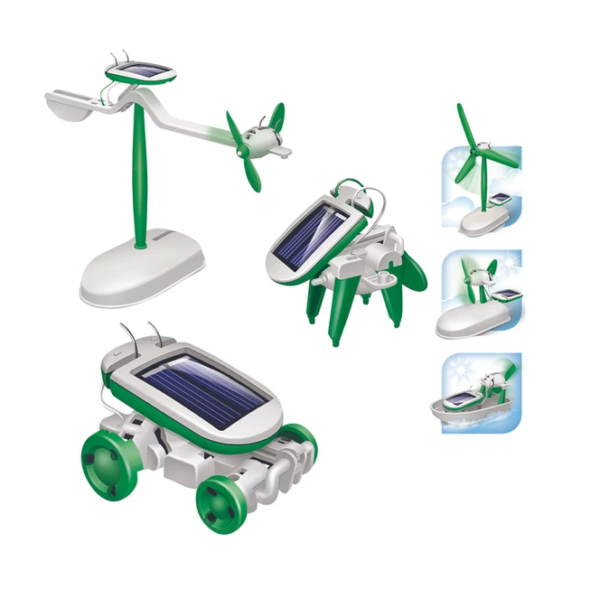 Αυτό το κιτ περιέχει τα πάντα για την κατασκευή 6 διαφορετικών μοντέλων με ηλιακή ενέργεια, συμπεριλαμβανομένων ενός αυτοκινήτου, ενός αεροπλάνου και ενός σκύλου!